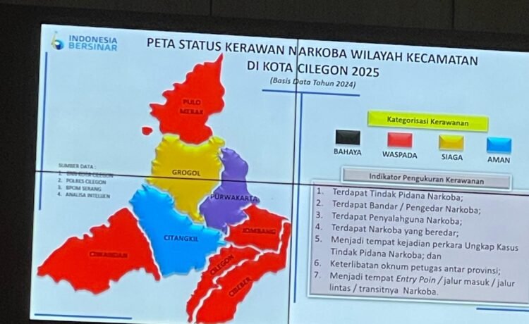Hal itu diungkapkan, Kepala Badan Narkotika Nasional (BNN) Kota Cilegon, Raden Bogie Setia Perwira Nusa bahwa, berdasarkan data di BNN pada tahun 2025 ini, terdapat 5 Kecamatan masuk dalam kategori zona merah.